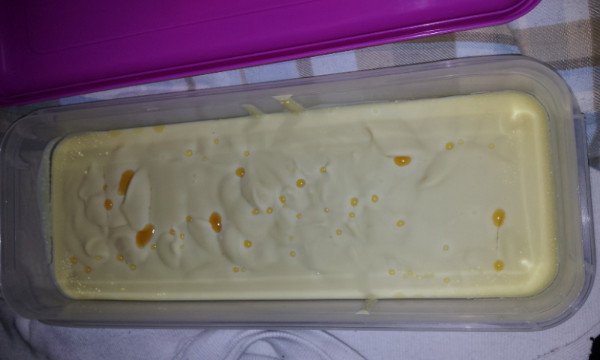 El lunes hice un jabón de lavanda y ayer le eche un vistazo para ver si podía desmoldarlo pero no estaba muy duro y decidí dejarlo para hoy, mi sorpresa ha sido que al mirarlo hoy tiene como algunas grietas y por los laterales líquido.